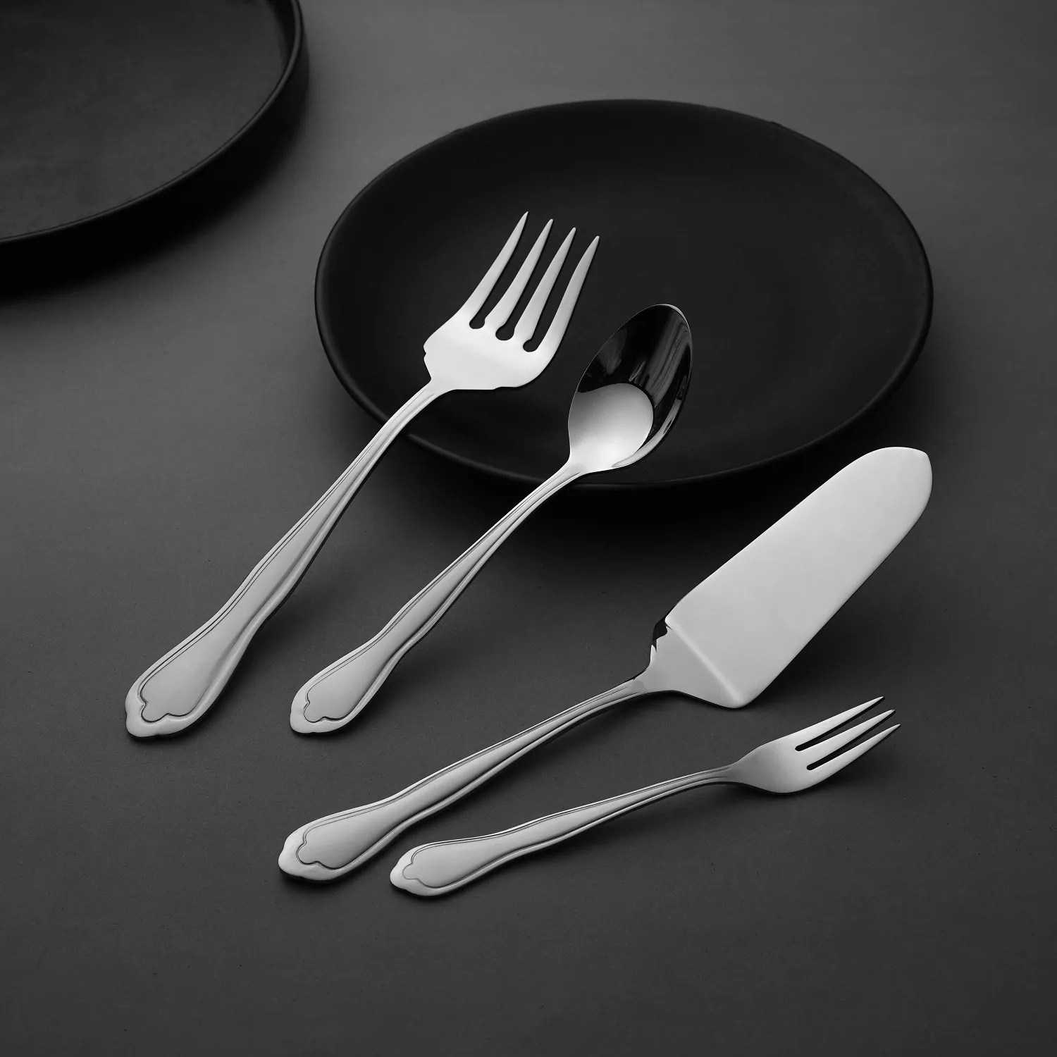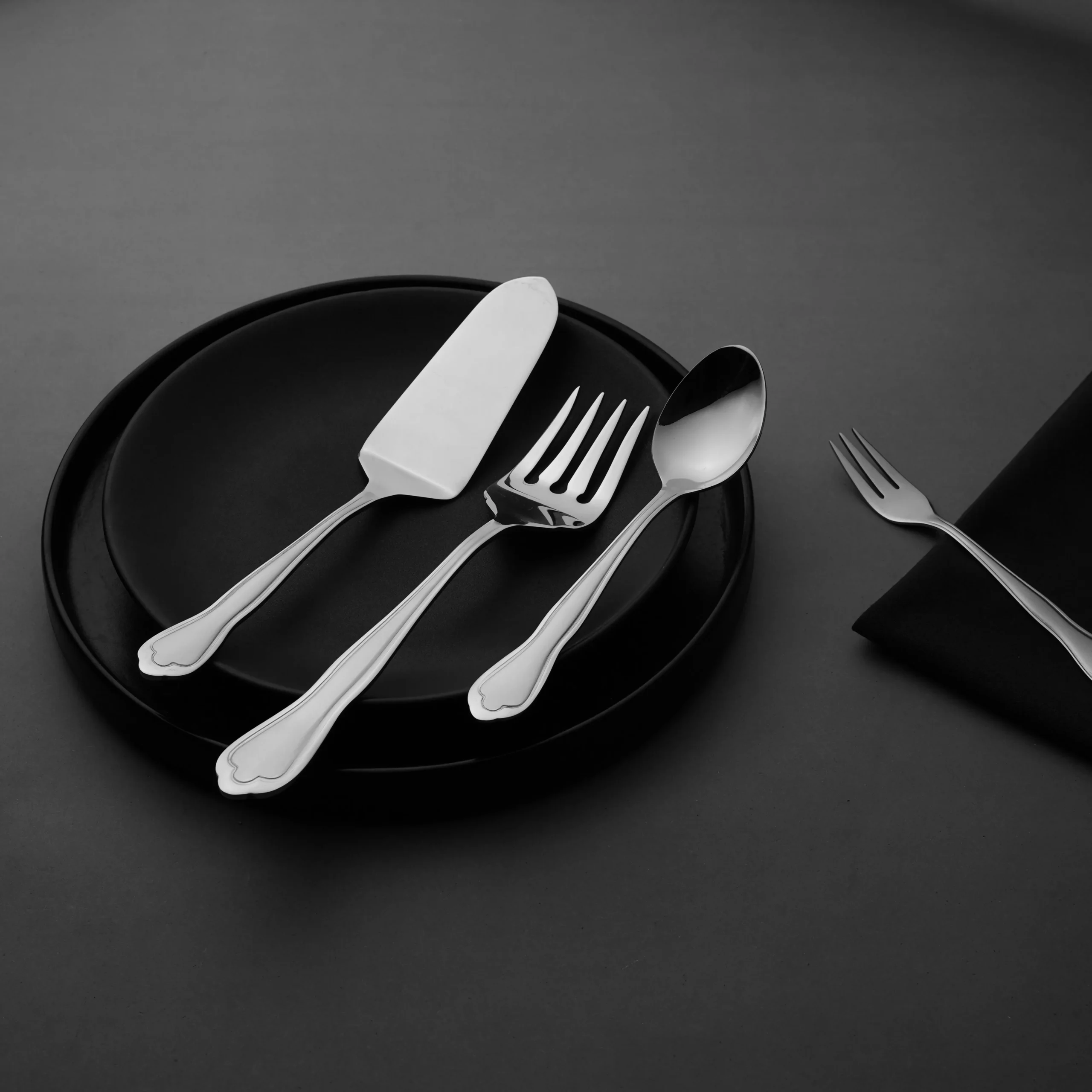 The sleek cake lifter and serving fork provide smooth handling and effortless serving, while the matching dessert spoons and forks ensure a coordinated, stylish experience for every guest. Clean lines and a modern silhouette make this set a versatile addition to any occasion, from casual tea times to festive celebrations.