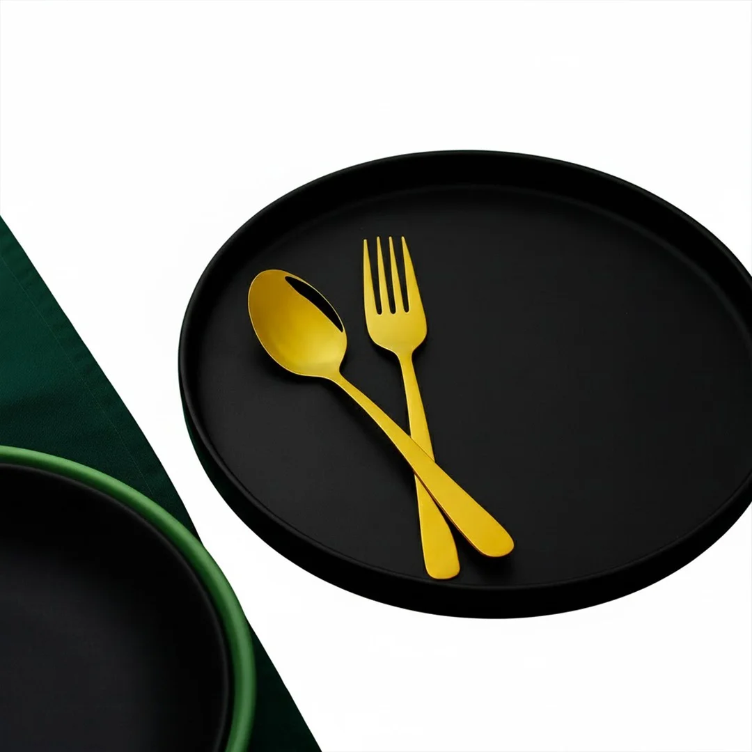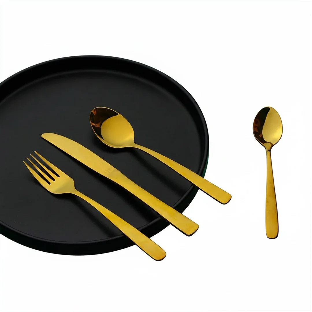 The minimalist plain gold design blends modern simplicity with classic luxury, making it perfect for both everyday dining and special occasions. Thoughtfully balanced and comfortable to hold, this set adds a refined touch to any meal.